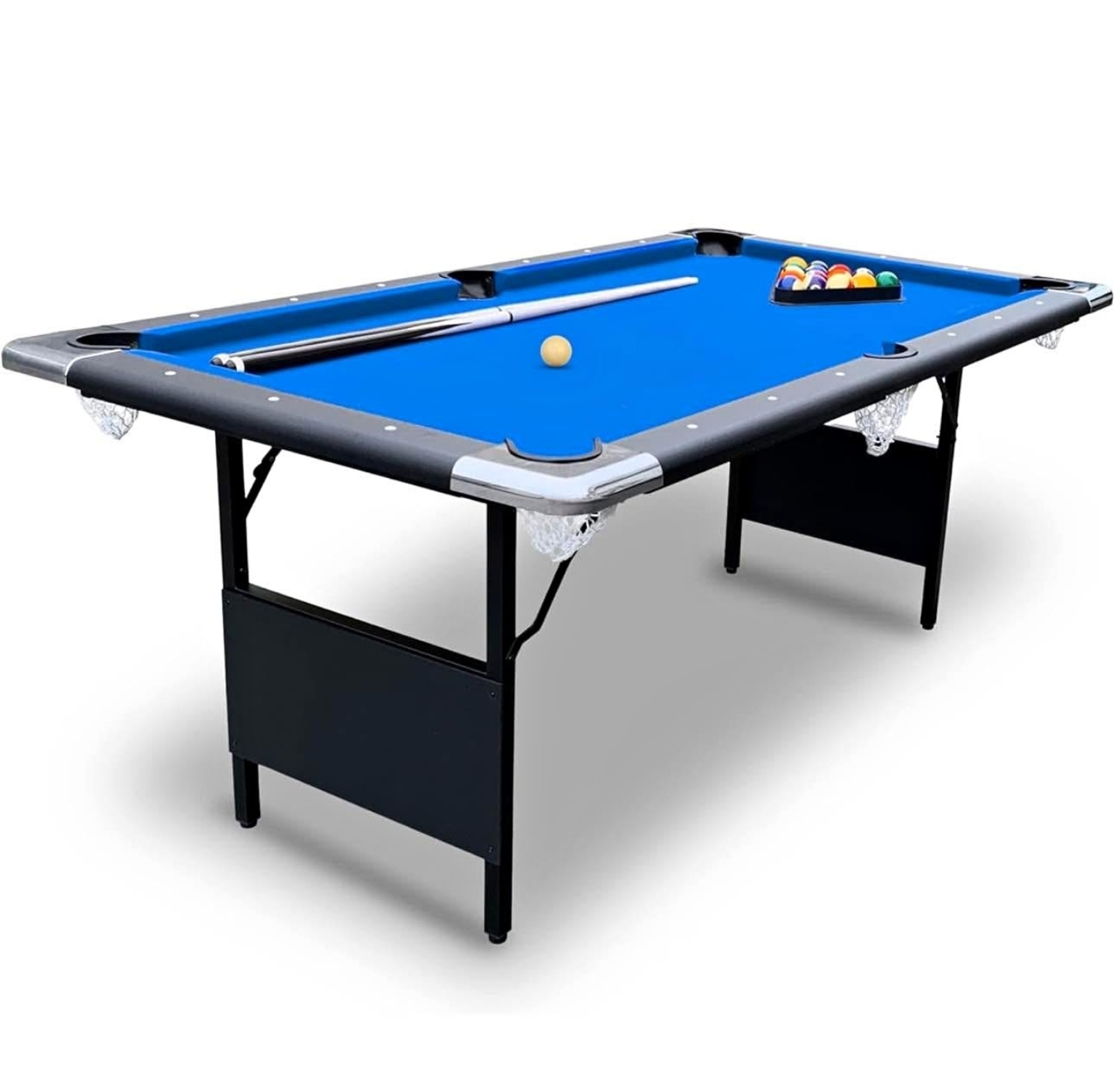 ✅ Set of balls, cue sticks, chalk, and triangle rack