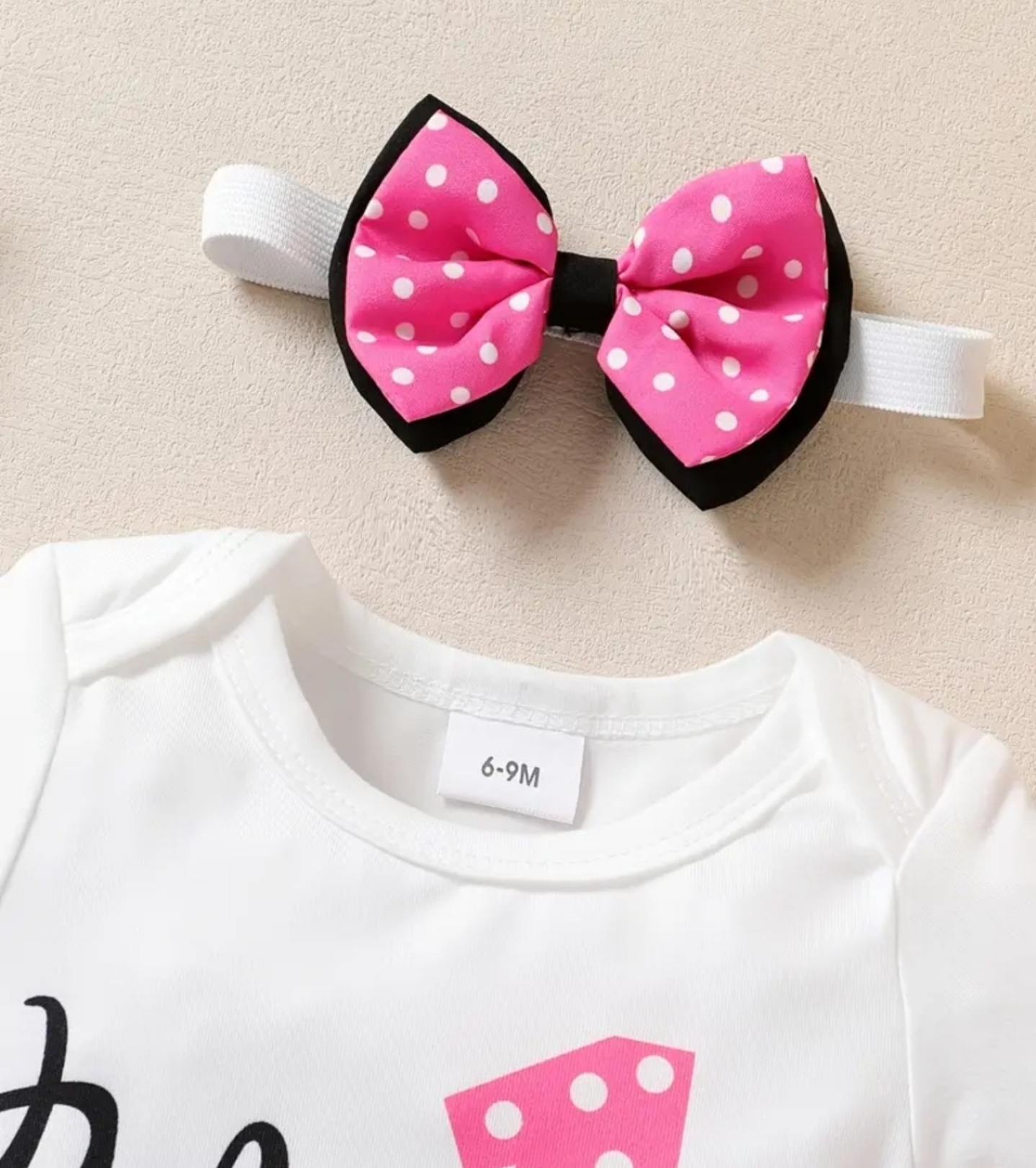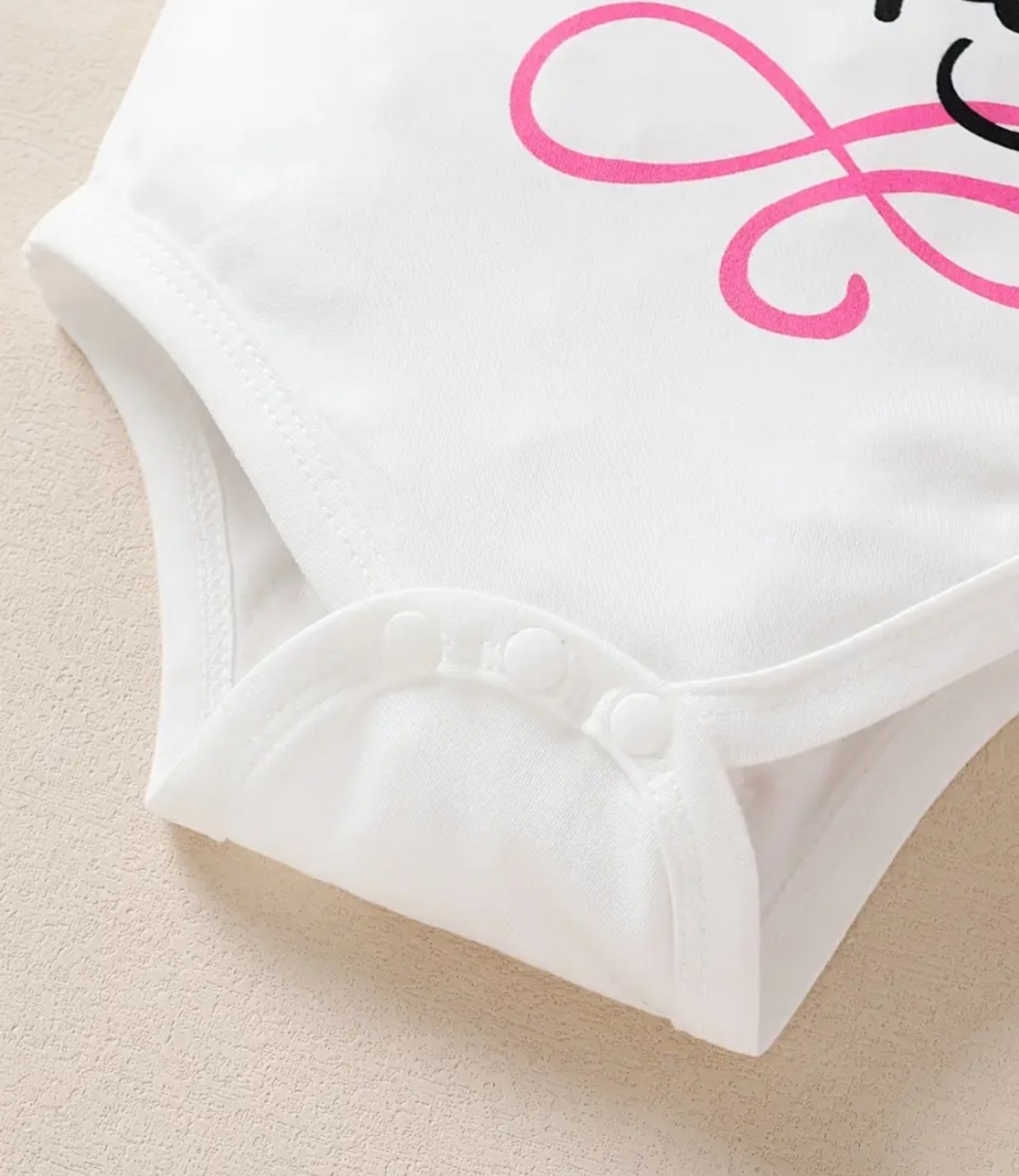 - Features: Short Sleeve, O Neck, Glitter Letter Print, Bowknot Decor, Snap Crotch.